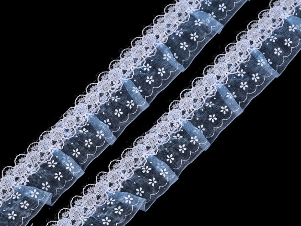 - Modrý volánikový prámik s čipkou šírka 30 mm / meter
