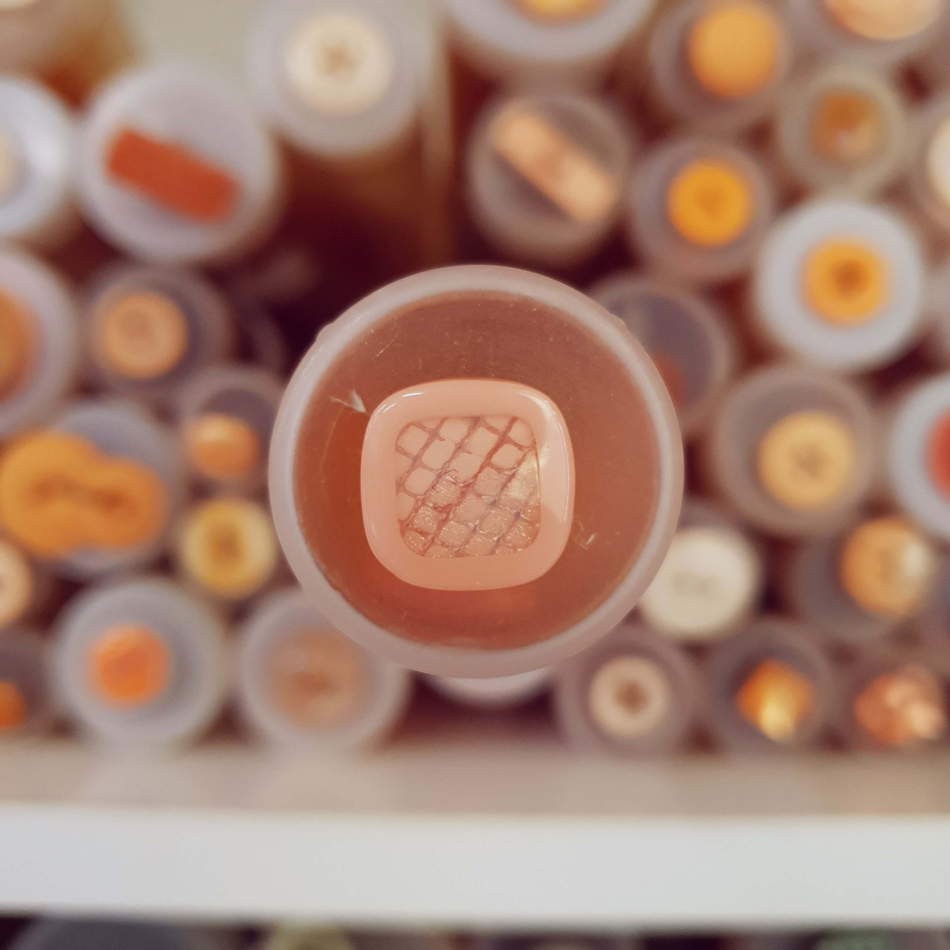 - Oranžovo lososový gombík štvorec cca 1,4cm