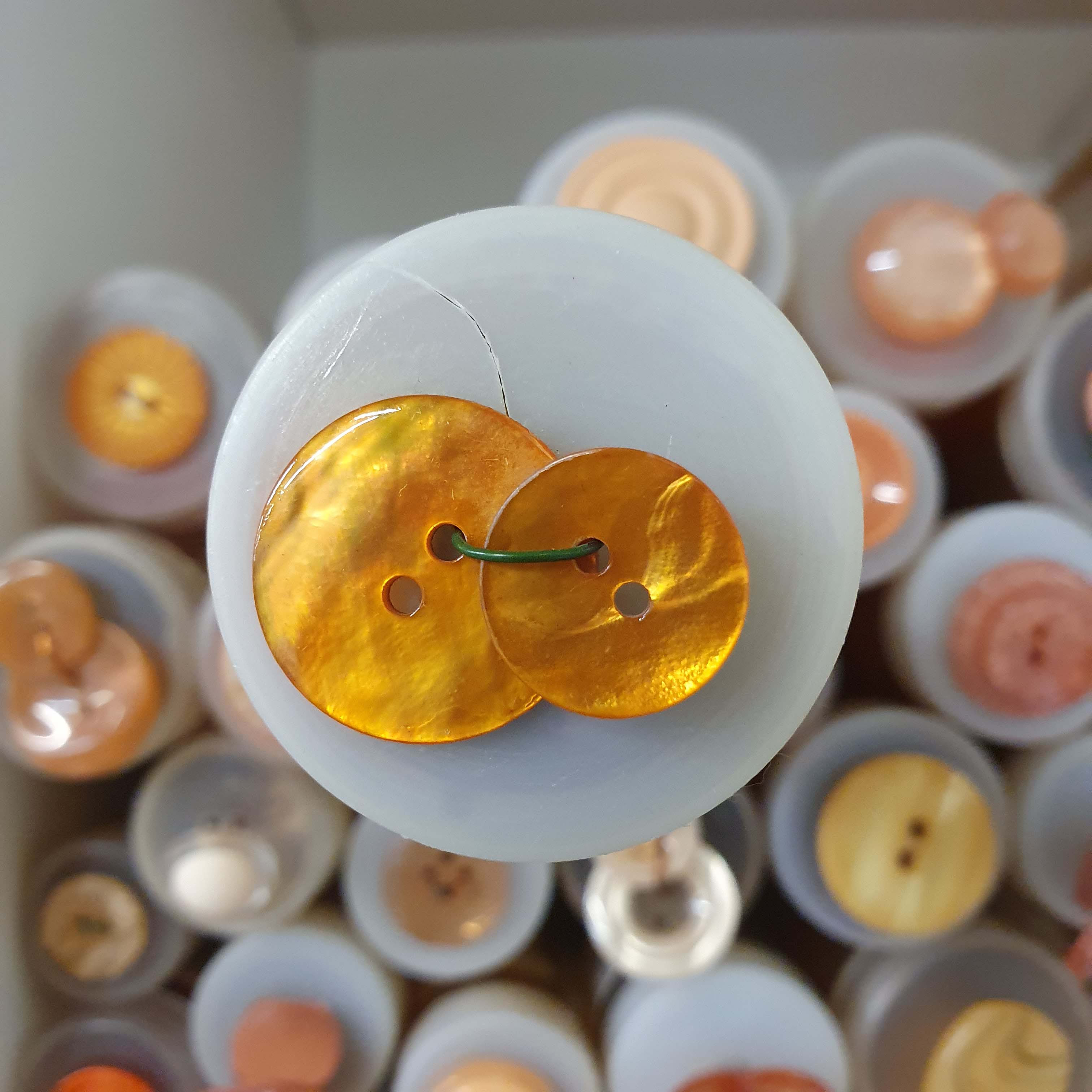 Oranžový gombík okrúhly perleť väčší cca 2cmSkladom0,40 EUR/ ks0,33 EUR bez DPH
