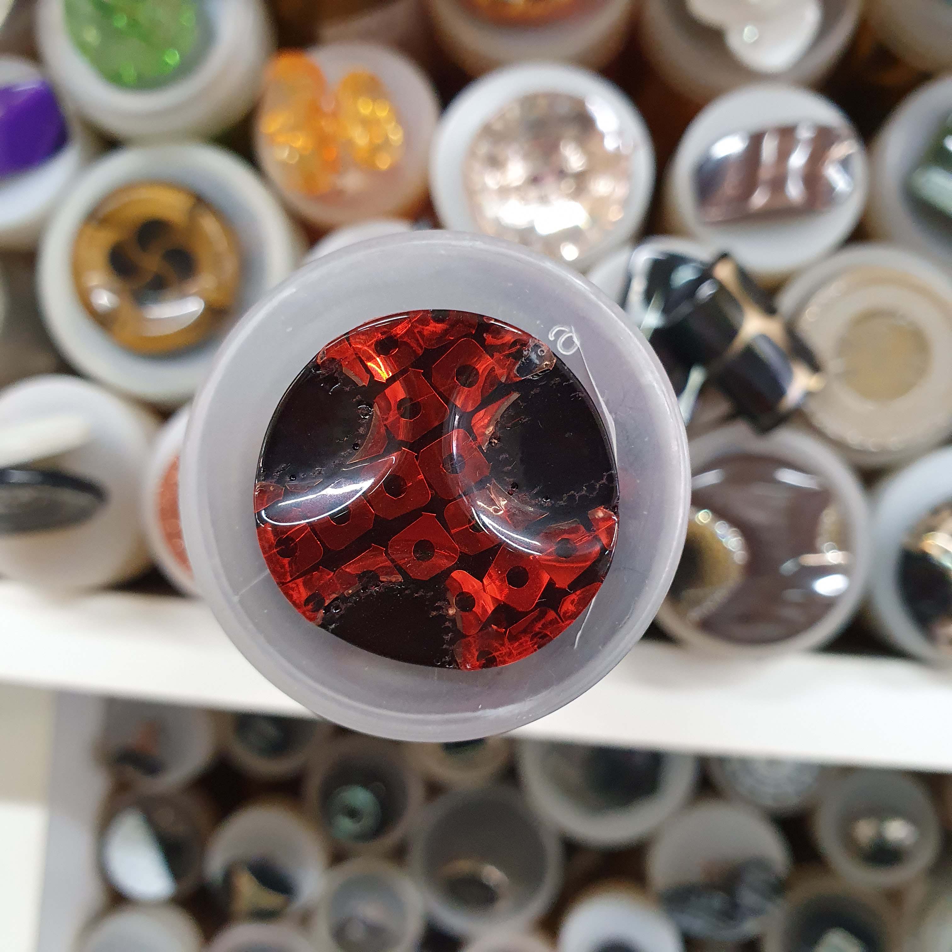 Ozdobný gombík čierno červený cca 2,5cmSkladom0,40 EUR/ ks0,33 EUR bez DPH