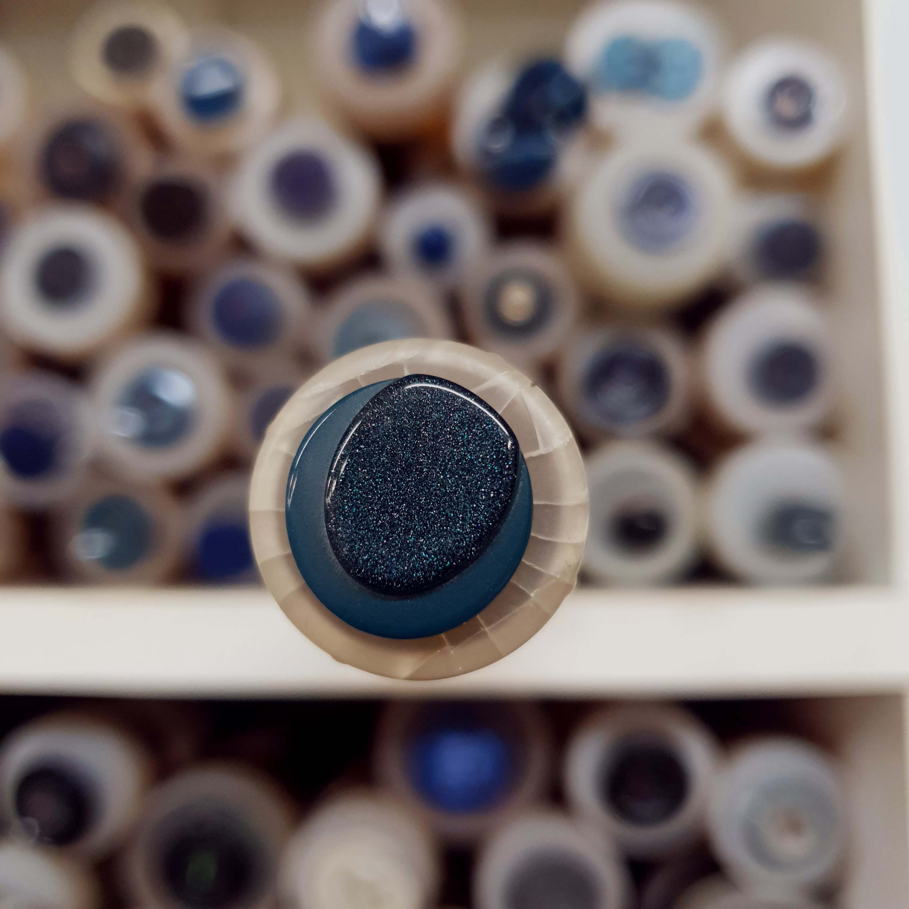 - Petrolej modrý gombík okrúhly cca 1,6cm