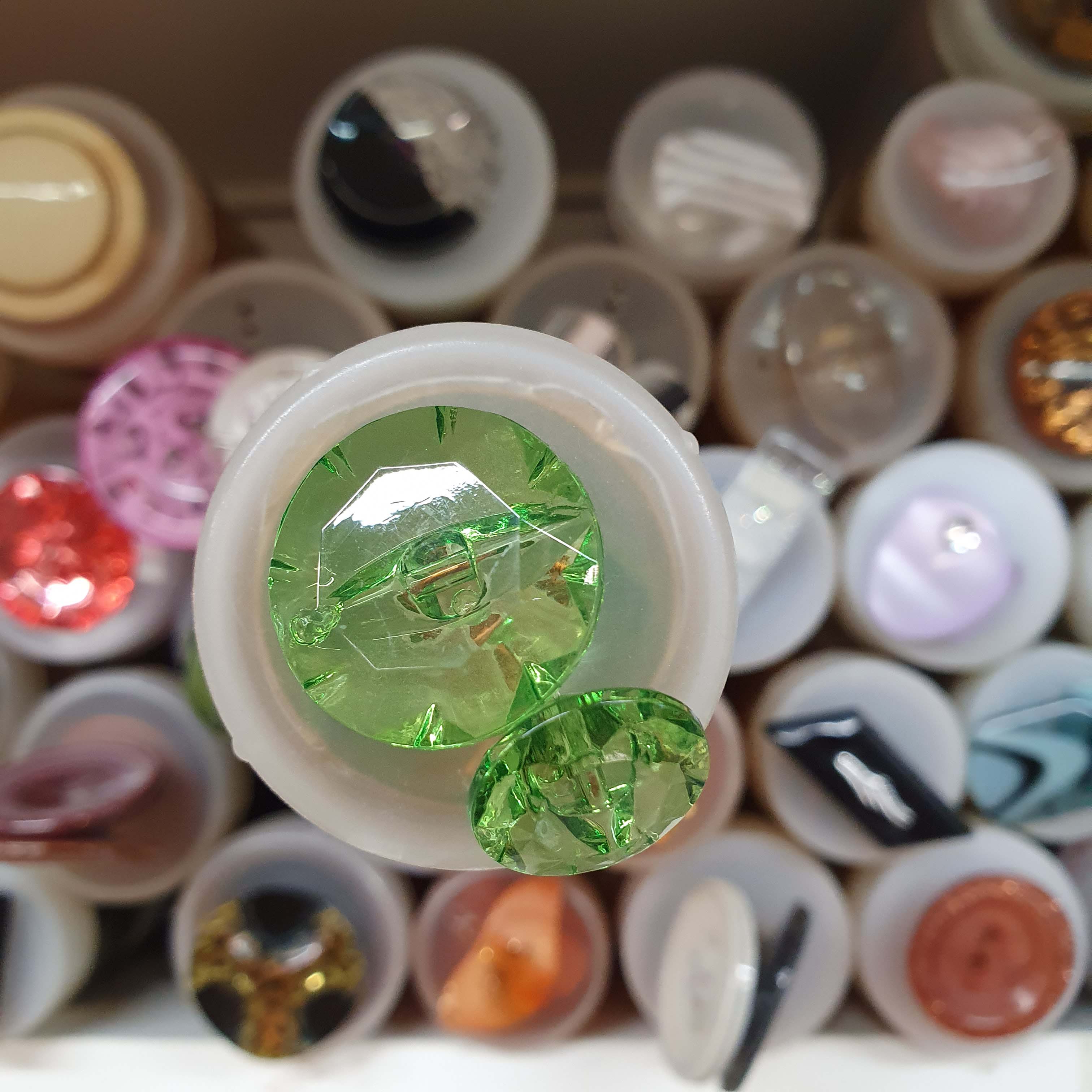 Priesvitný zelený gombík okrúhly väčší dekoratívny cca 2,2cmSkladom0,35 EUR/ ks0,28 EUR bez DPH
