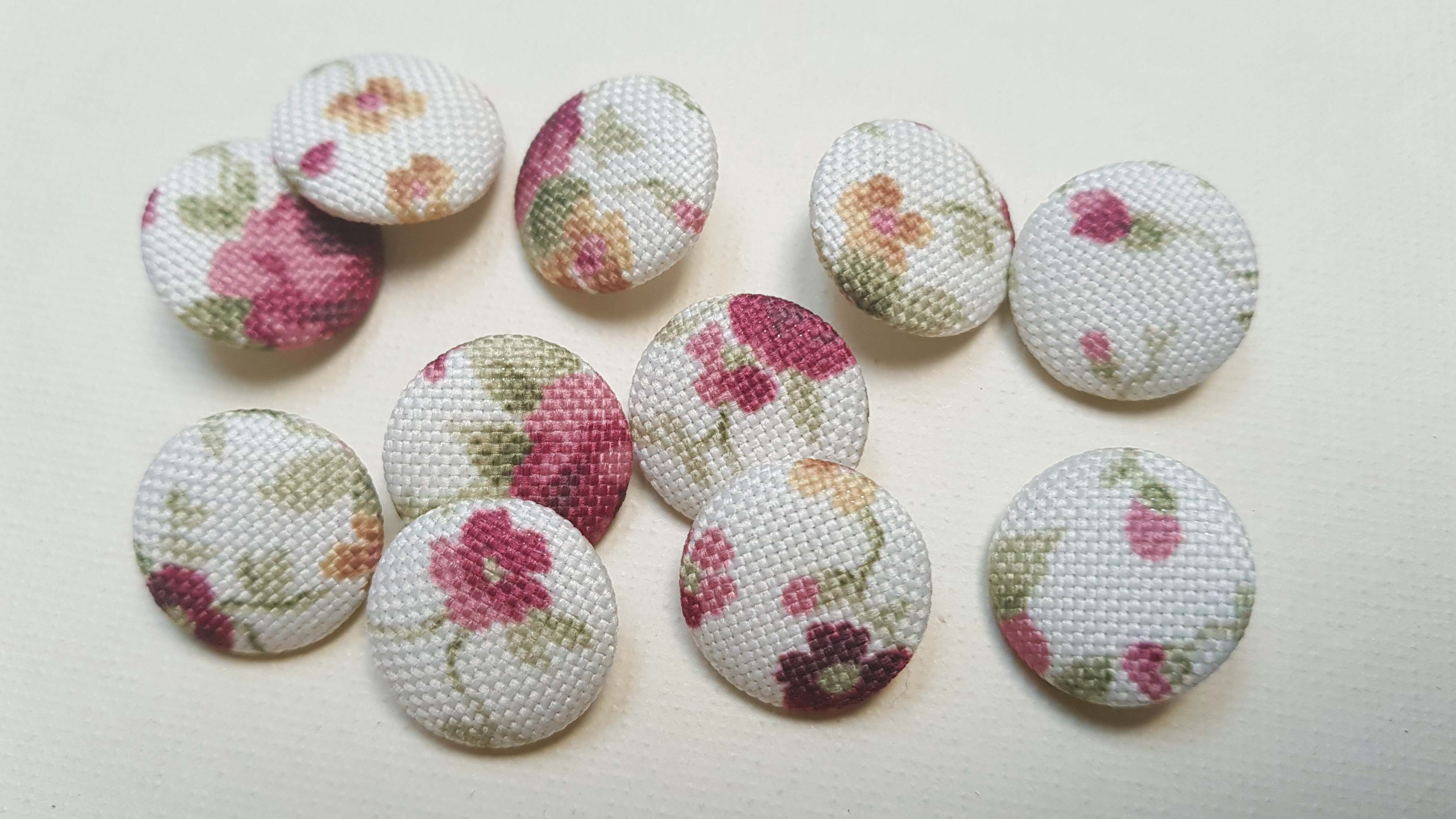 Krásne, ručne poťahované gombíky z kvalitnej bavlnenej látky dodajú bodku Vášmu výrobku. Vhodné na svetríky, ako dekorácia na hračky, čiapky, sukne, a iné výrobky