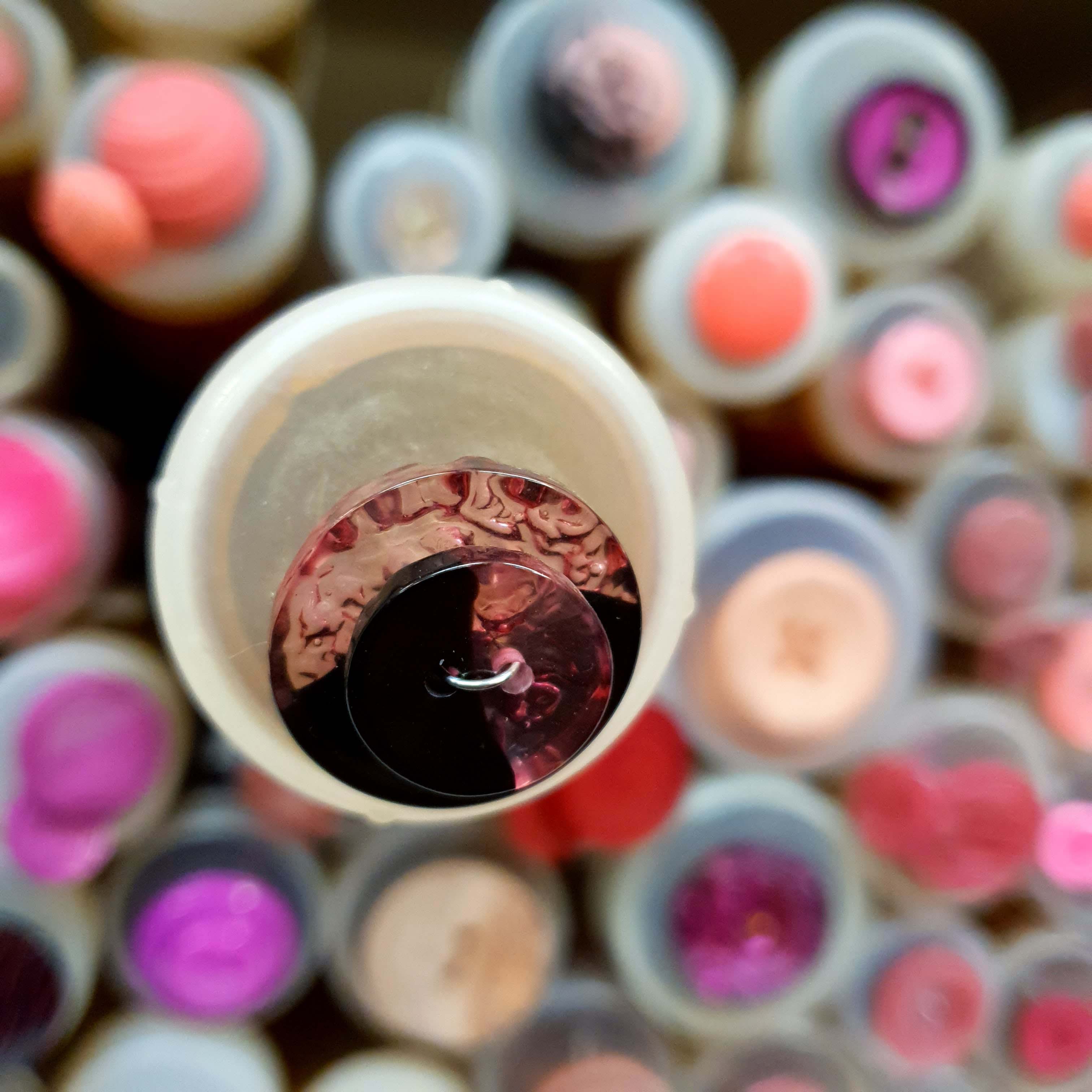 Ružovo čierny gombík menší cca 1,5cmSkladom0,25 EUR/ ks0,20 EUR bez DPH