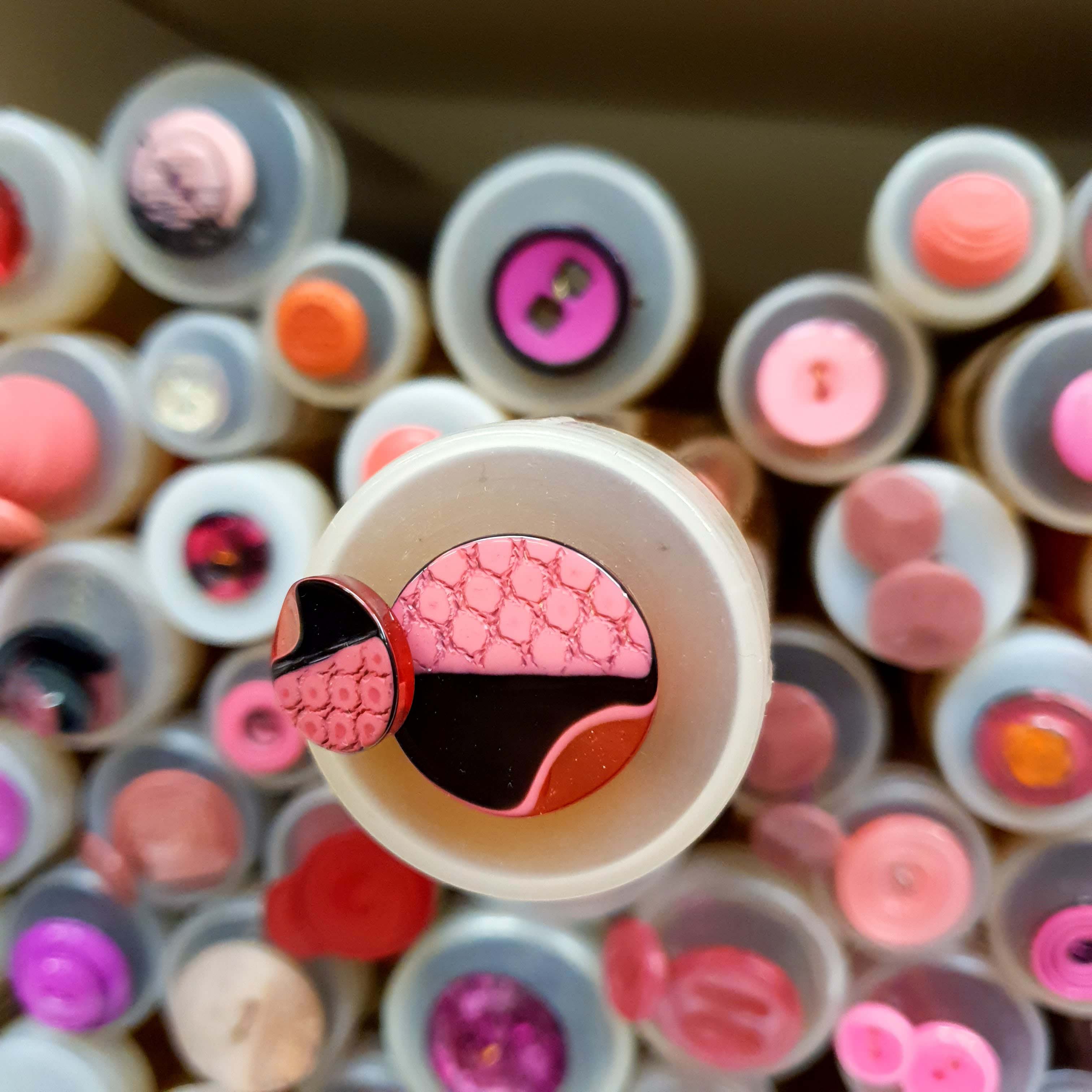 Ružovo čierny gombík väčší cca 2,2cmSkladom0,35 EUR/ ks0,28 EUR bez DPH