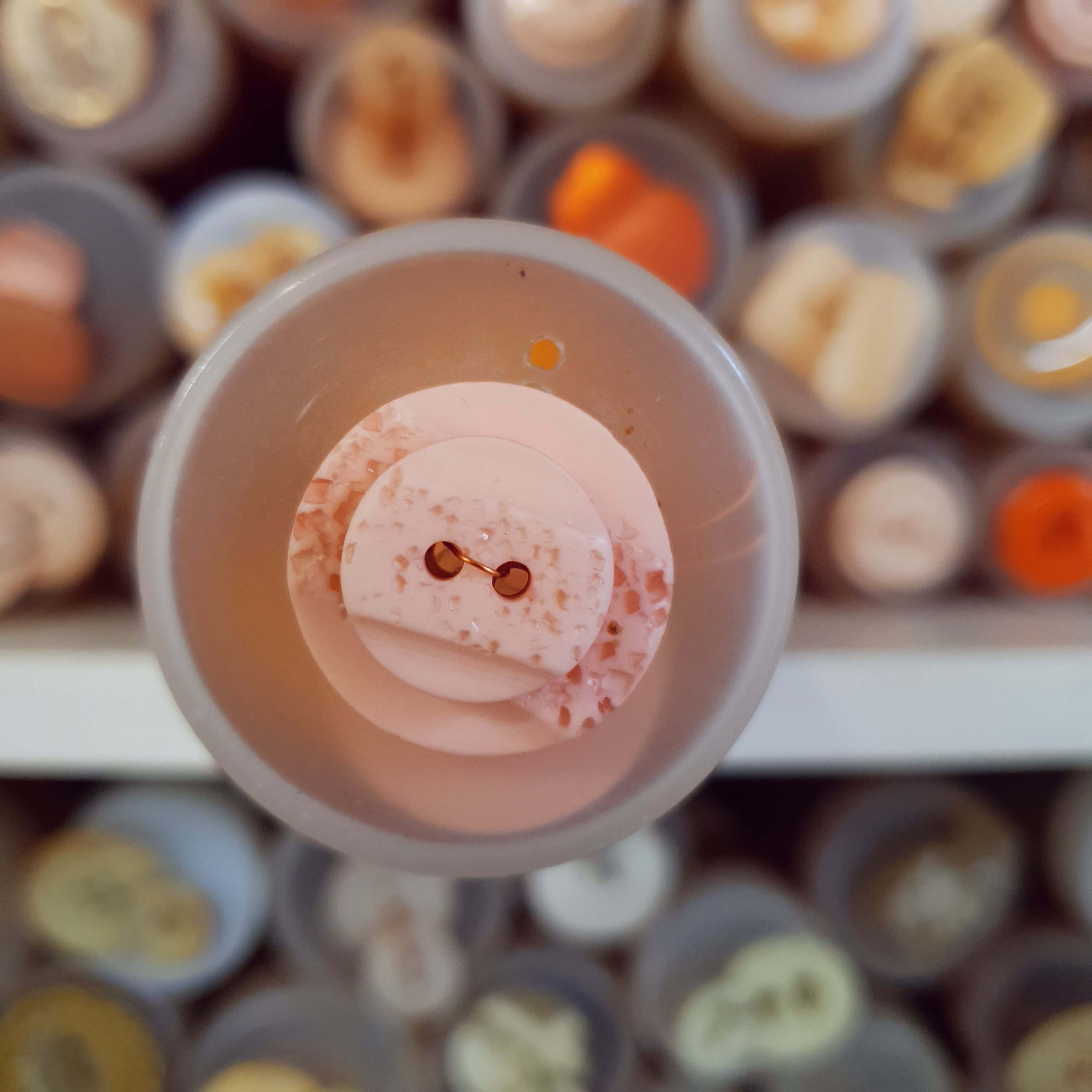 - Ružovo oranž lososový okrúhly gombík väčší cca 2,3cm