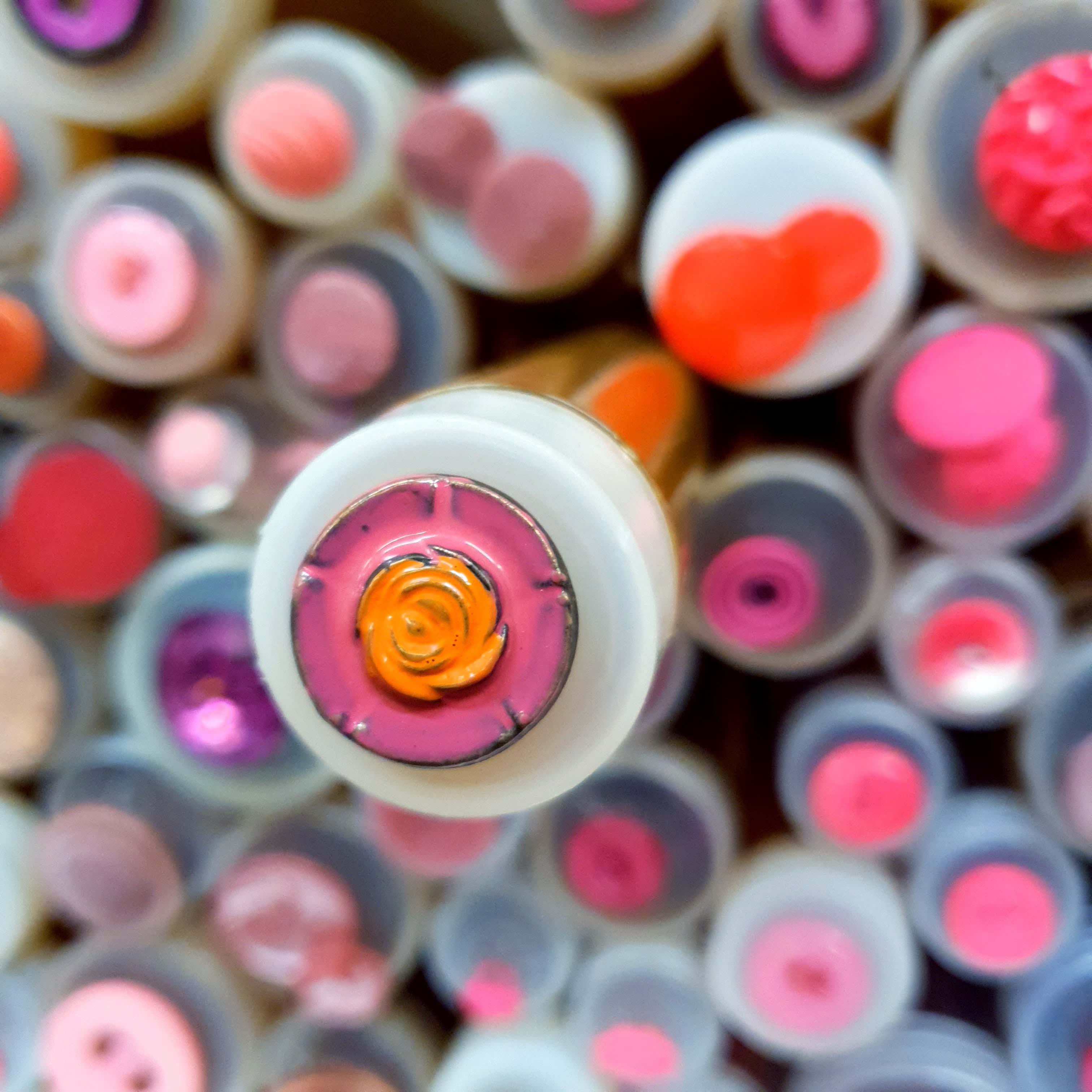 Ružovo oranžový dekoratívny gombík cca 1,9cmSkladom0,30 EUR/ ks0,24 EUR bez DPH