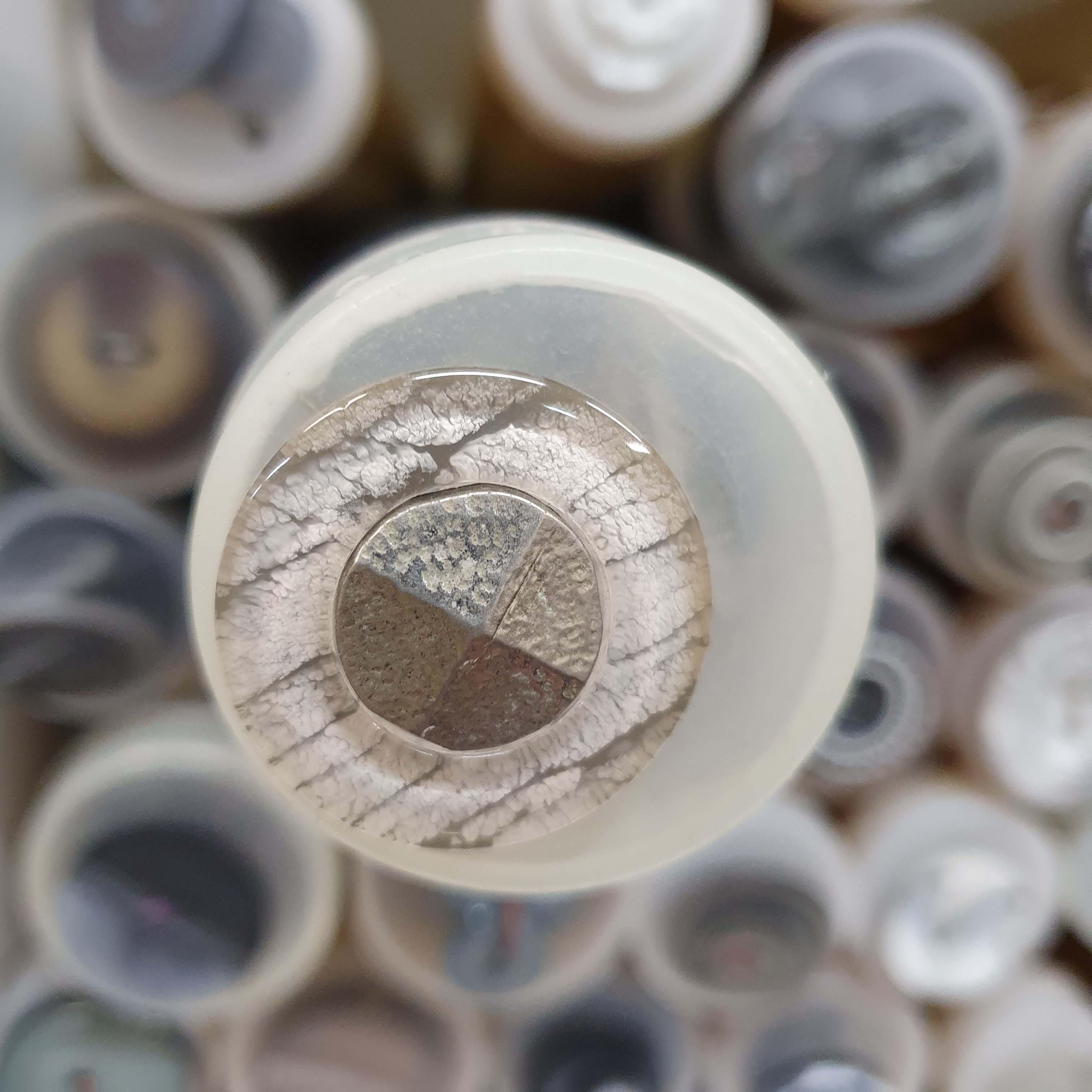 Sivo bežový ozdobný gombík okrúhly cca 2,8cmSkladom0,65 EUR/ ks0,53 EUR bez DPH