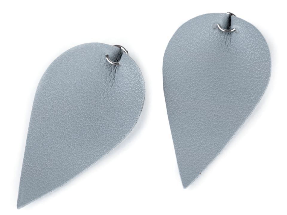 Sivo modrý list / kvapka z eko kože s krúžkom 3,4 x 6,2 cm / KUSSkladom0,30 EUR/ ks0,24 EUR bez DPH