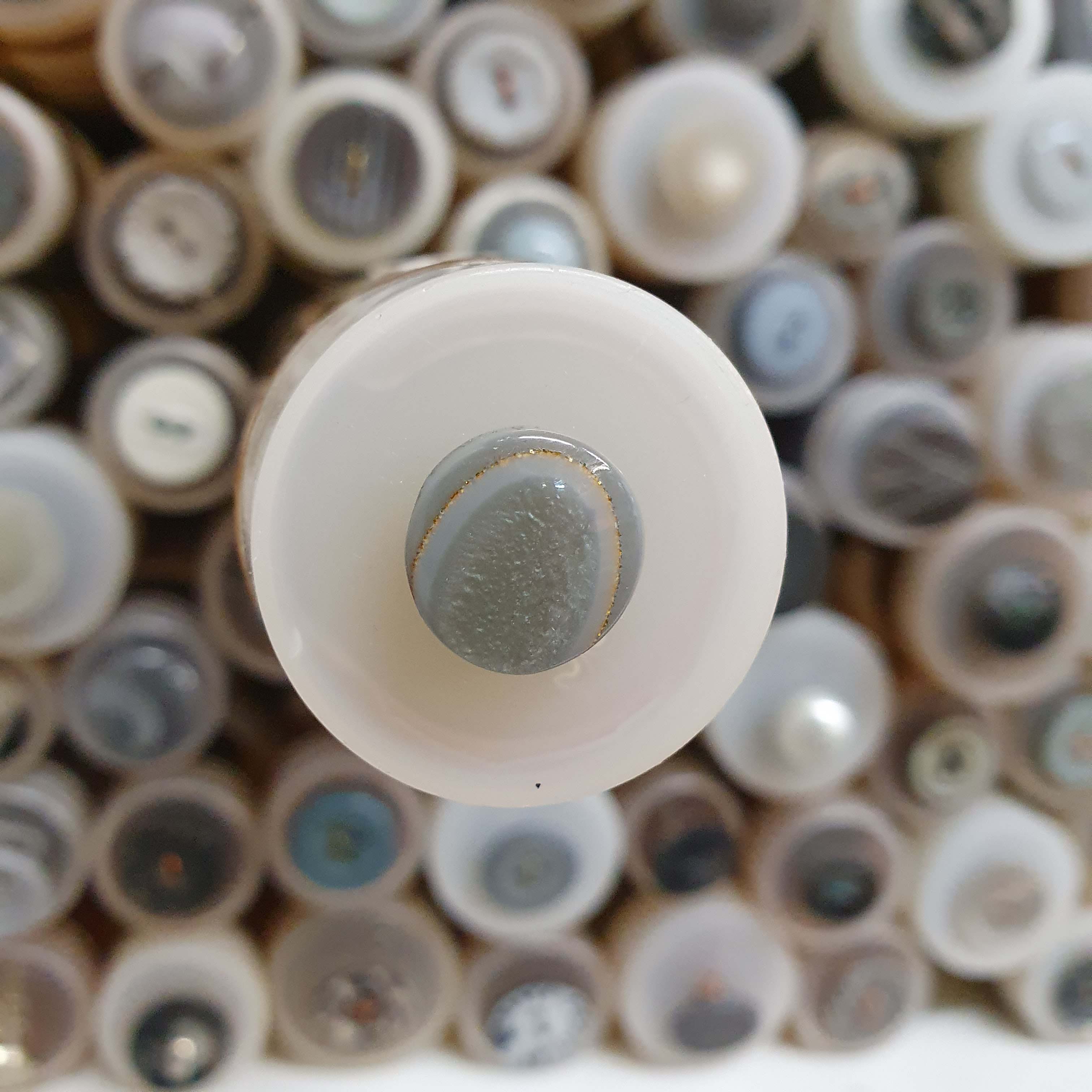 Sivý ozdobný gombík okrúhly cca 1,2cm