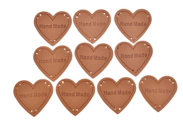 Srdce - kožený bežový Handmade štítok / nápis cca 3,5cm /ks
