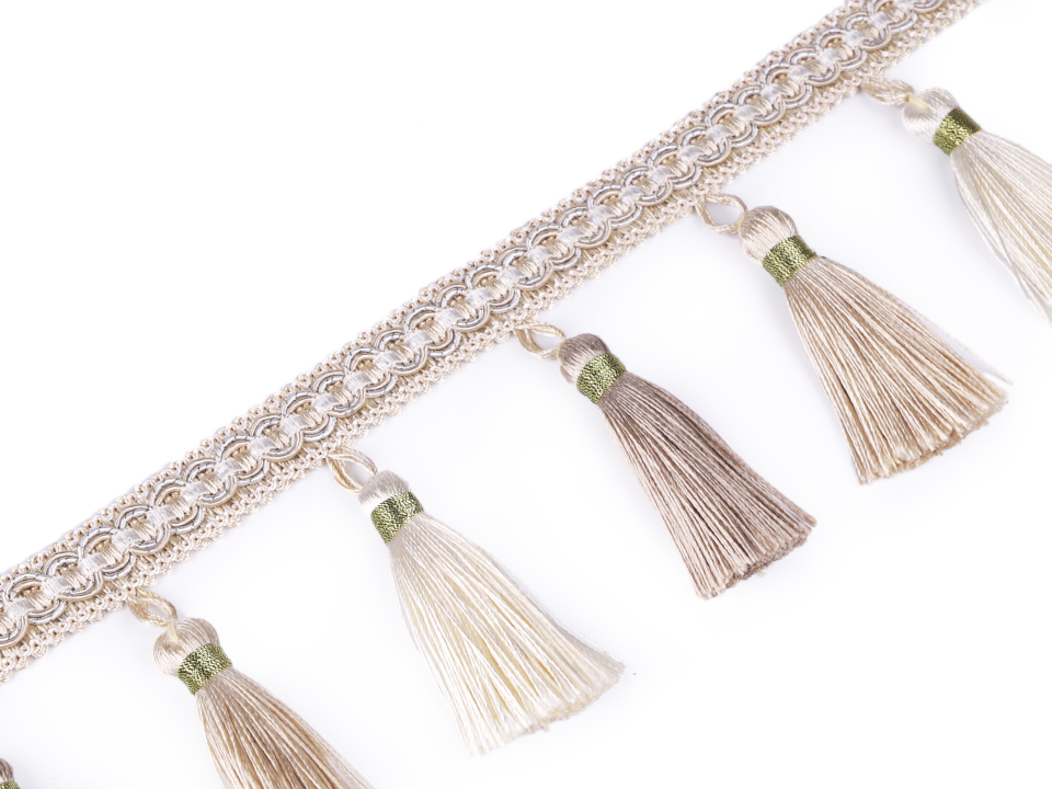 Svetlejší bežový prámik so strapcami šírka 95 mm / meterSkladom5,95 EUR/ ks4,84 EUR bez DPH