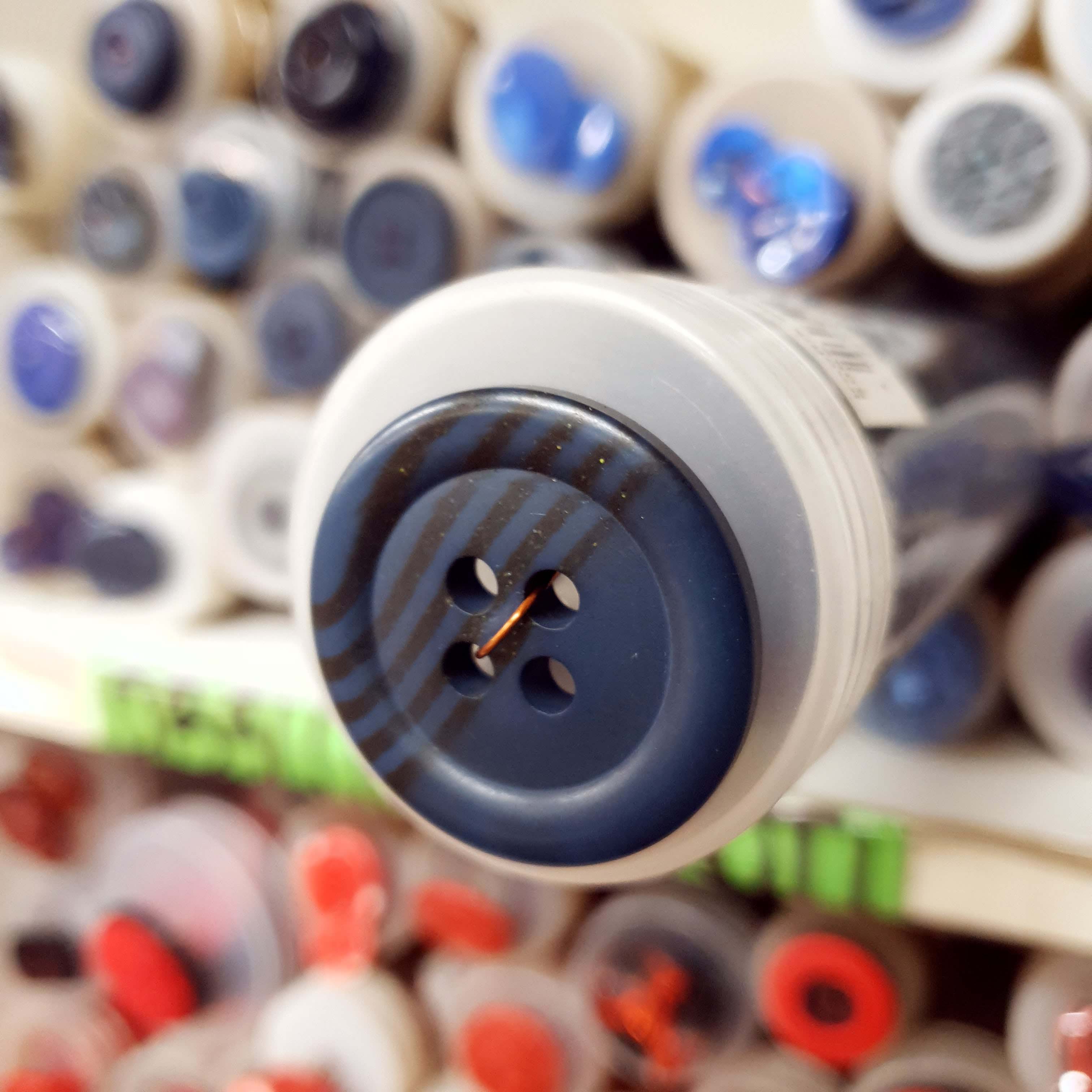 - Tmavo modrý gombík okrúhly cca 3,3cm