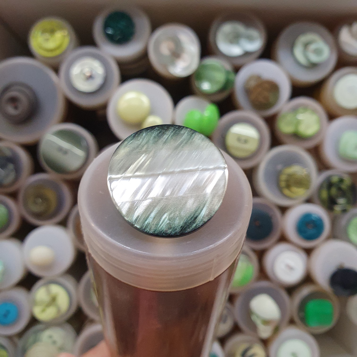 Zeleno morský gombík dekoratívny okrúhly cca 2,8cm