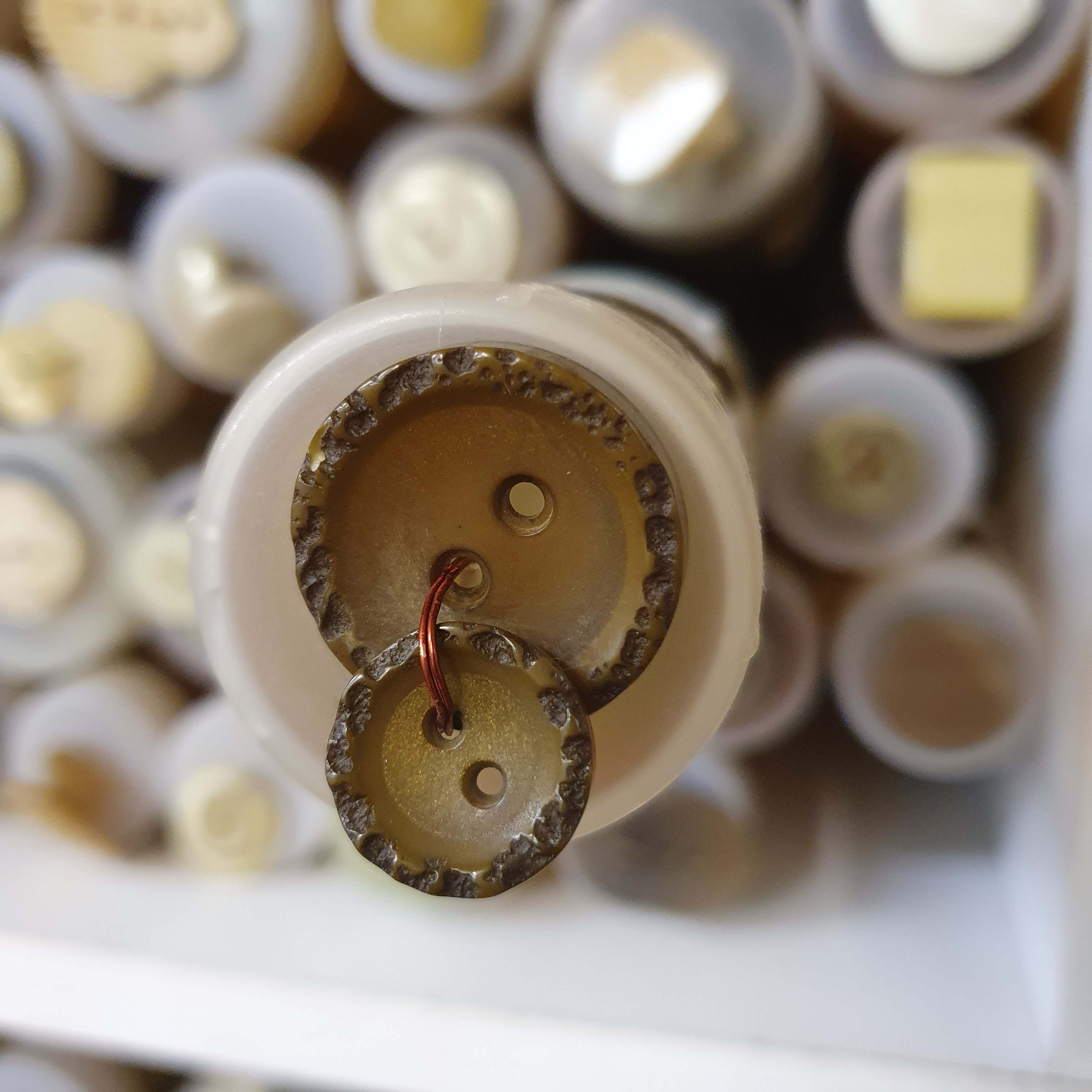 - Zeleno žltý gombík okrúhly menší cca 1,5cm
