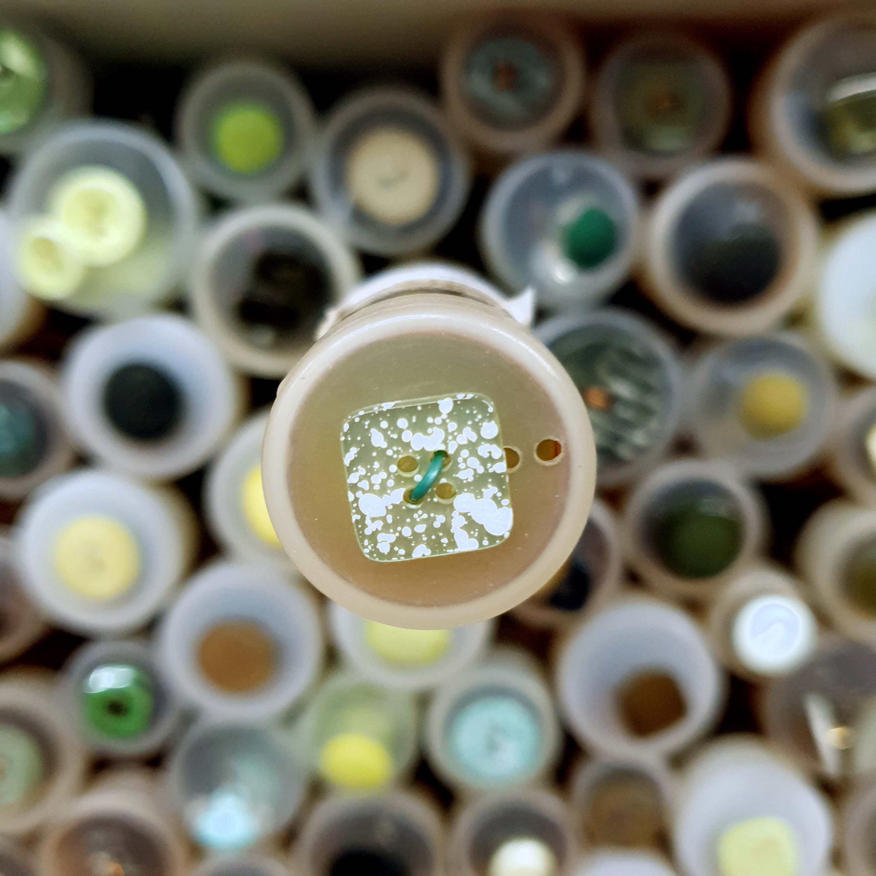 - Zelený gombík štvorcový cca 1,2cm
