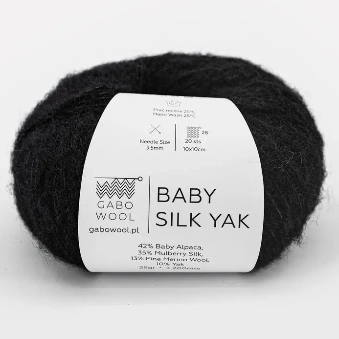 Baby Silk Yak 9500 - čierna priadza z baby alpaky, hodvábu, merina a jakaSkladom7,95 EUR/ ks6,46 EUR bez DPH