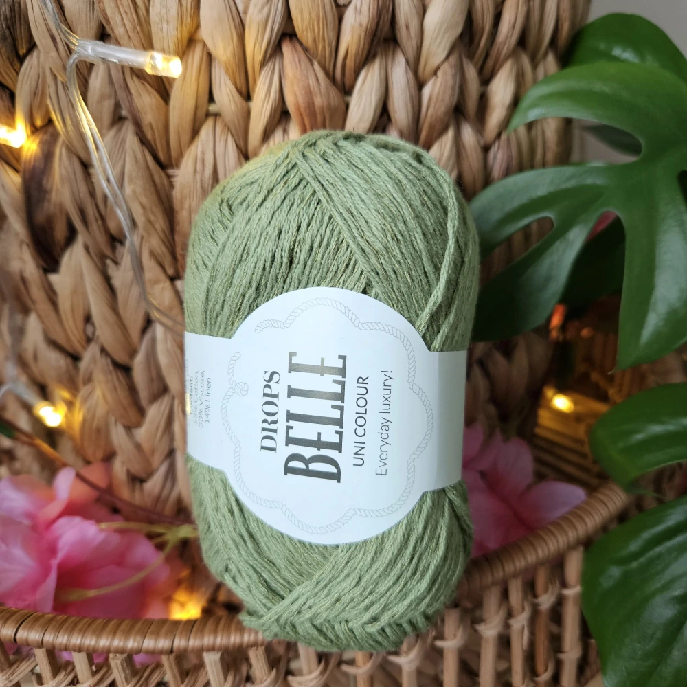 - Belle 10 - svetlo olivovo zelená priadza s bavlnou, viskózou a ľanom