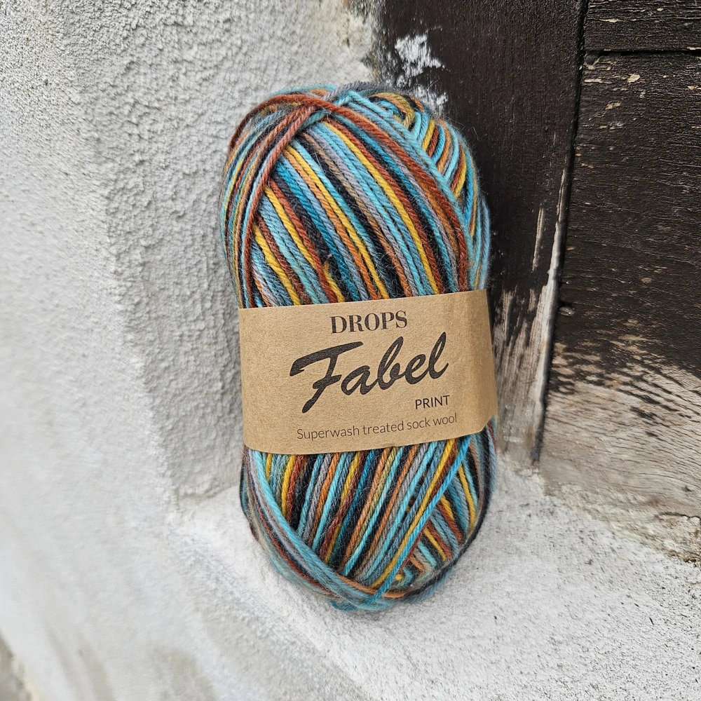 Fabel Print 928 - tyrkys hnedasá melír ponožková vlna