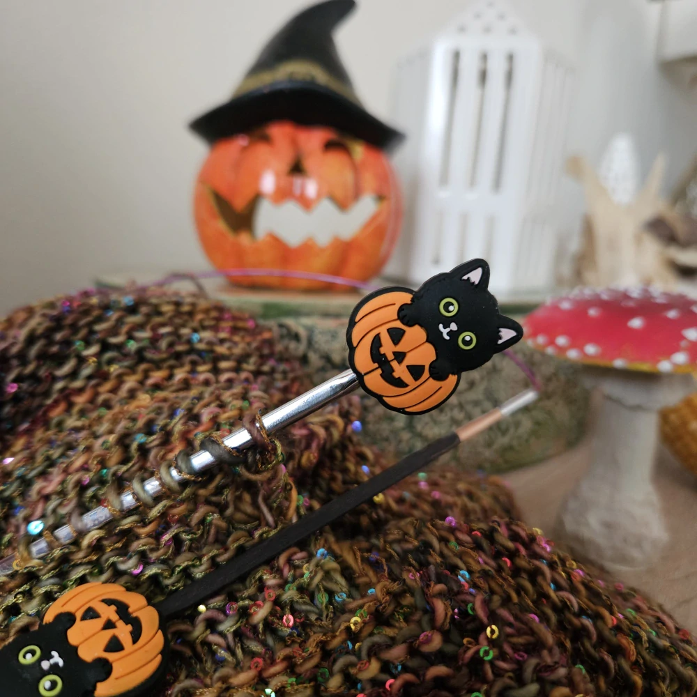 Mačka v tekvici - koncovky / zarážky na špičky ihlice - 2ks / 1 pár