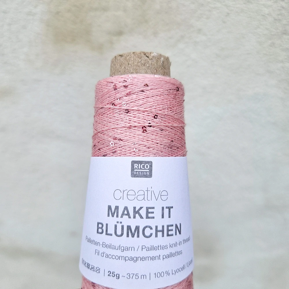 Make It Blümchen 001 - ružová tenká pripletacia priadza s flitramiSkladom3,30 EUR/ ks2,68 EUR bez DPH