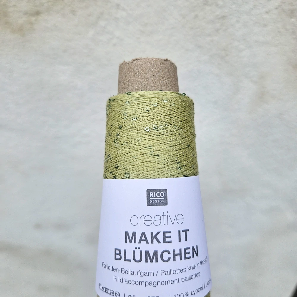 Make It Blümchen 014 - svetlo olivovo zelená tenká pripletacia priadza s flitramiSkladom3,30 EUR/ ks2,68 EUR bez DPH