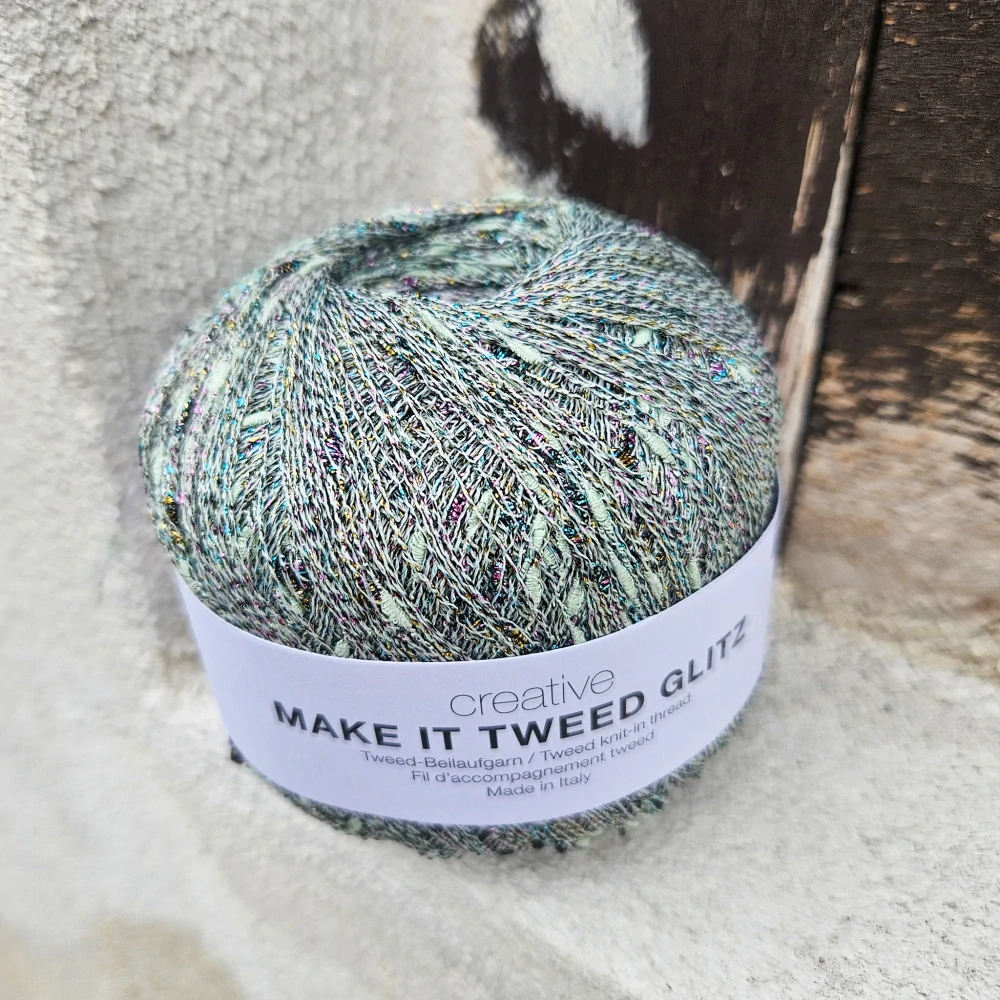 - Tenučká pripletacia priadza s leskom na vytvorenie tvídového efektu s nopkami vytvorí zaujímavý dizajn na každom výrobku