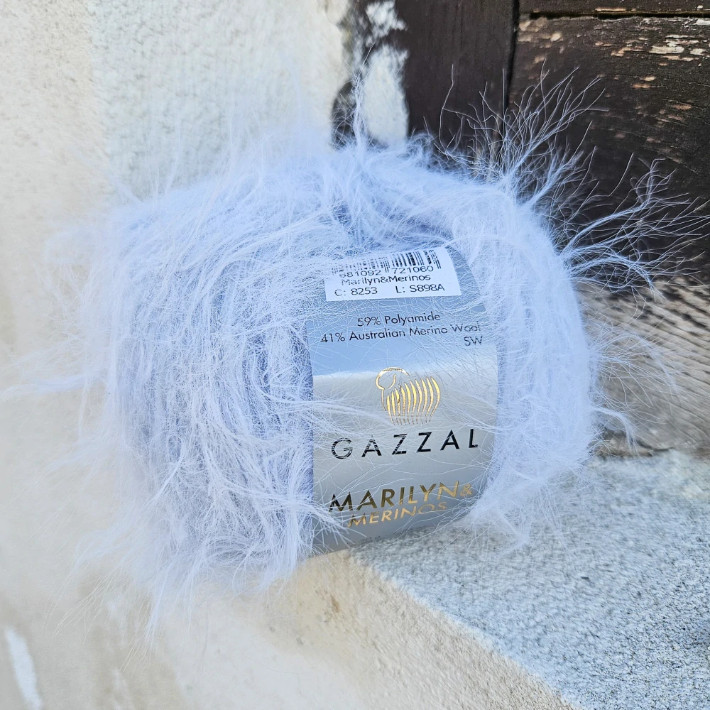 - Vlna Marilyn & Merinos od firmy Gazzal je jemnučká prémiová vlna určená na pletenie a háčkovanie. Kombinuje jemnosť, hrejivosť a eleganciu. Je chlpatá - huňatá s chĺpkami, čo ju robí ideálnou na lemy, kožúšteky, vesty, doplnky, alebo aj detské výrobky.