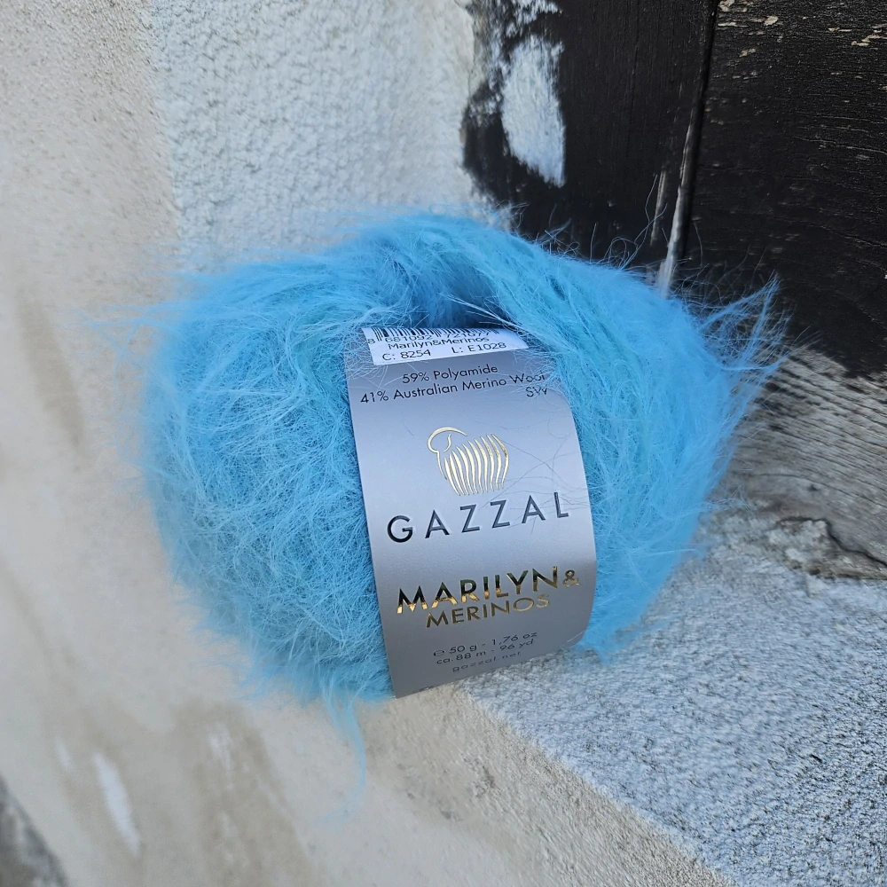 - Vlna Marilyn & Merinos od firmy Gazzal je jemnučká prémiová vlna určená na pletenie a háčkovanie. Kombinuje jemnosť, hrejivosť a eleganciu. Je chlpatá - huňatá s chĺpkami, čo ju robí ideálnou na lemy, kožúšteky, vesty, doplnky, alebo aj detské výrobky.