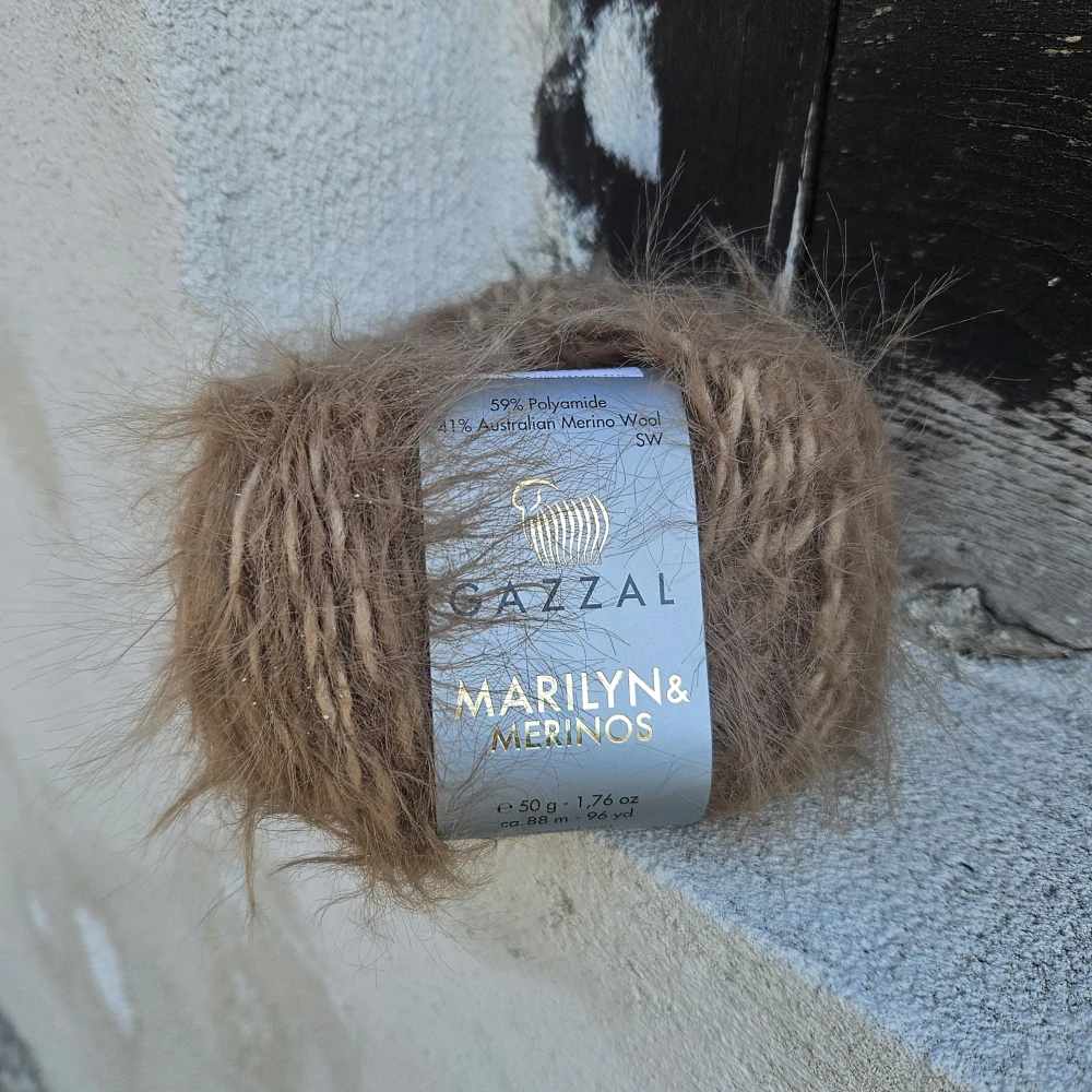 - Vlna Marilyn & Merinos od firmy Gazzal je jemnučká prémiová vlna určená na pletenie a háčkovanie. Kombinuje jemnosť, hrejivosť a eleganciu. Je chlpatá - huňatá s chĺpkami, čo ju robí ideálnou na lemy, kožúšteky, vesty, doplnky, alebo aj detské výrobky.