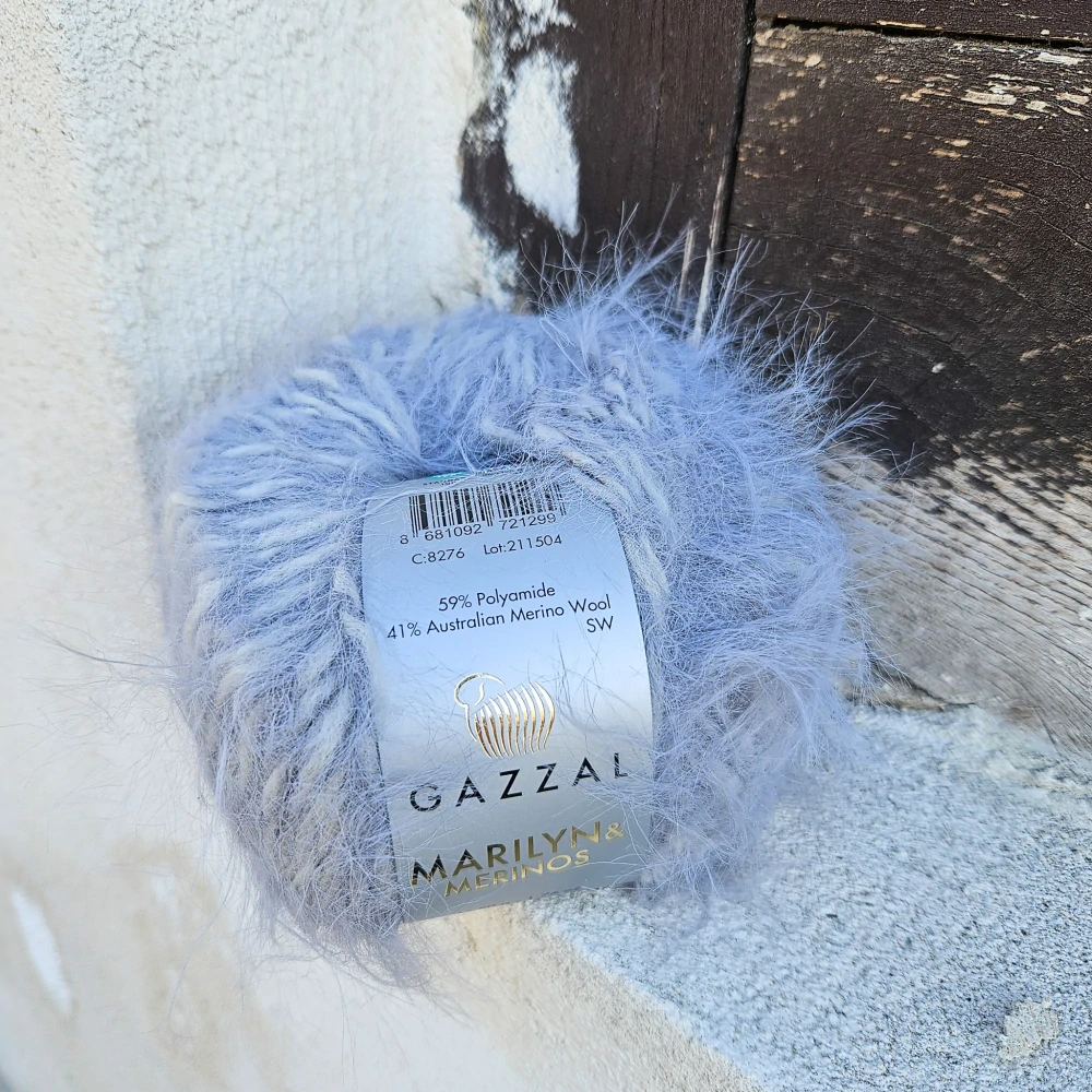 - Vlna Marilyn & Merinos od firmy Gazzal je jemnučká prémiová vlna určená na pletenie a háčkovanie. Kombinuje jemnosť, hrejivosť a eleganciu. Je chlpatá - huňatá s chĺpkami, čo ju robí ideálnou na lemy, kožúšteky, vesty, doplnky, alebo aj detské výrobky.