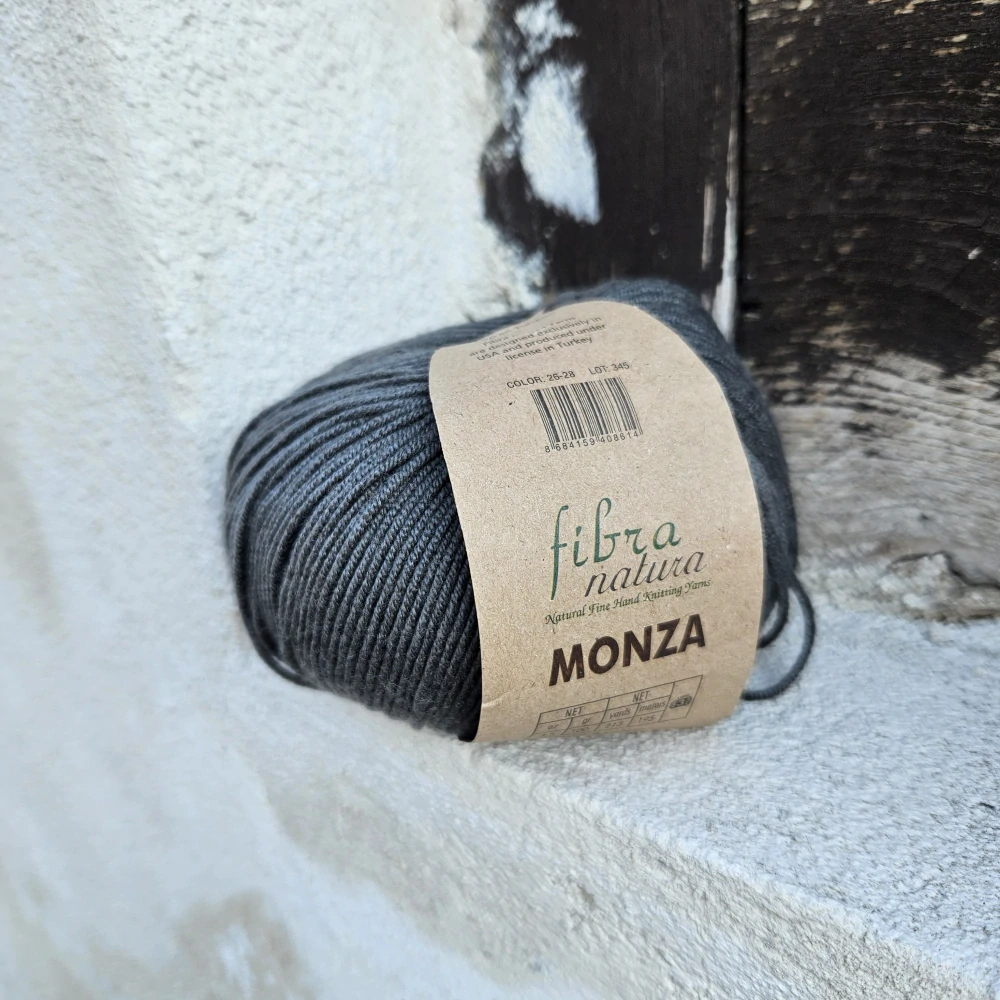 - Monza 26-28 - tmavšia sivá priadza z bambusu a merina