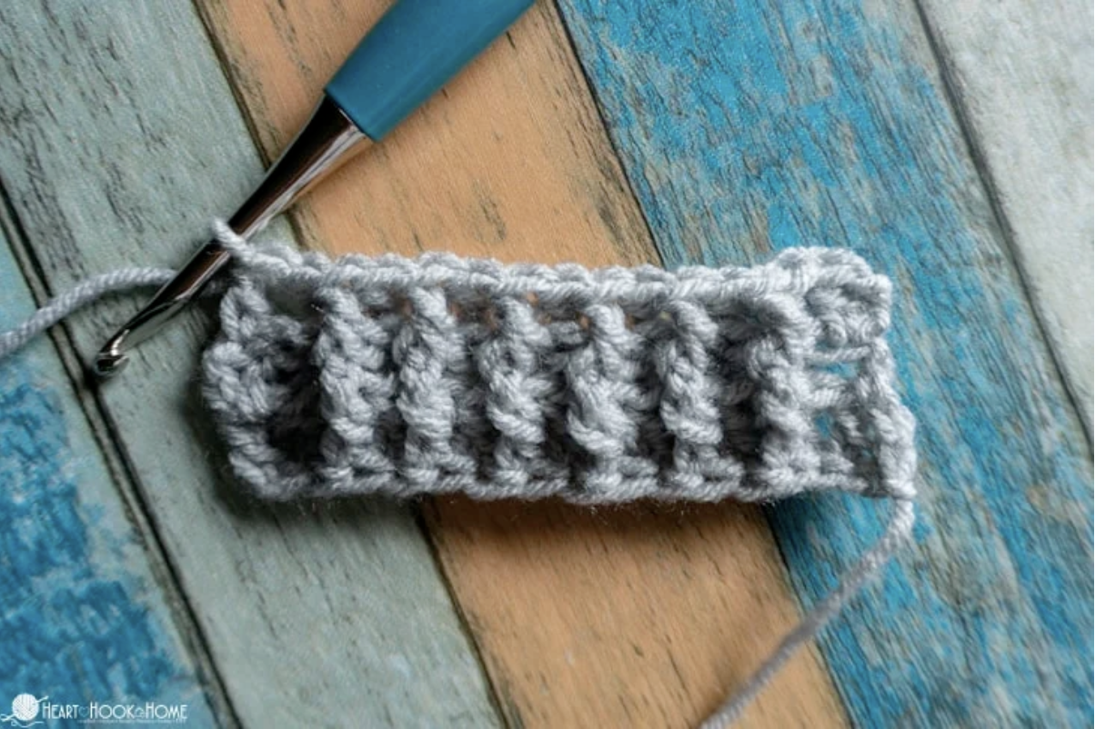 - "Vestový vzor / očko" - je podobný ako pri háčkovaní krátkym stĺpikom, ale s tým rozdielom, že namiesto vrchnej časti očka idete do stĺpika očka z predchádzajúceho radu.