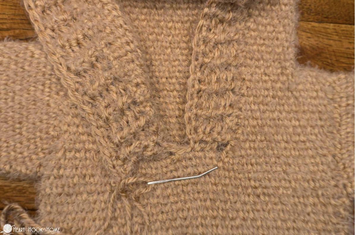 Ukončite prácu s dostatočne dlhým koncom na neskôr zošitie ramien.
