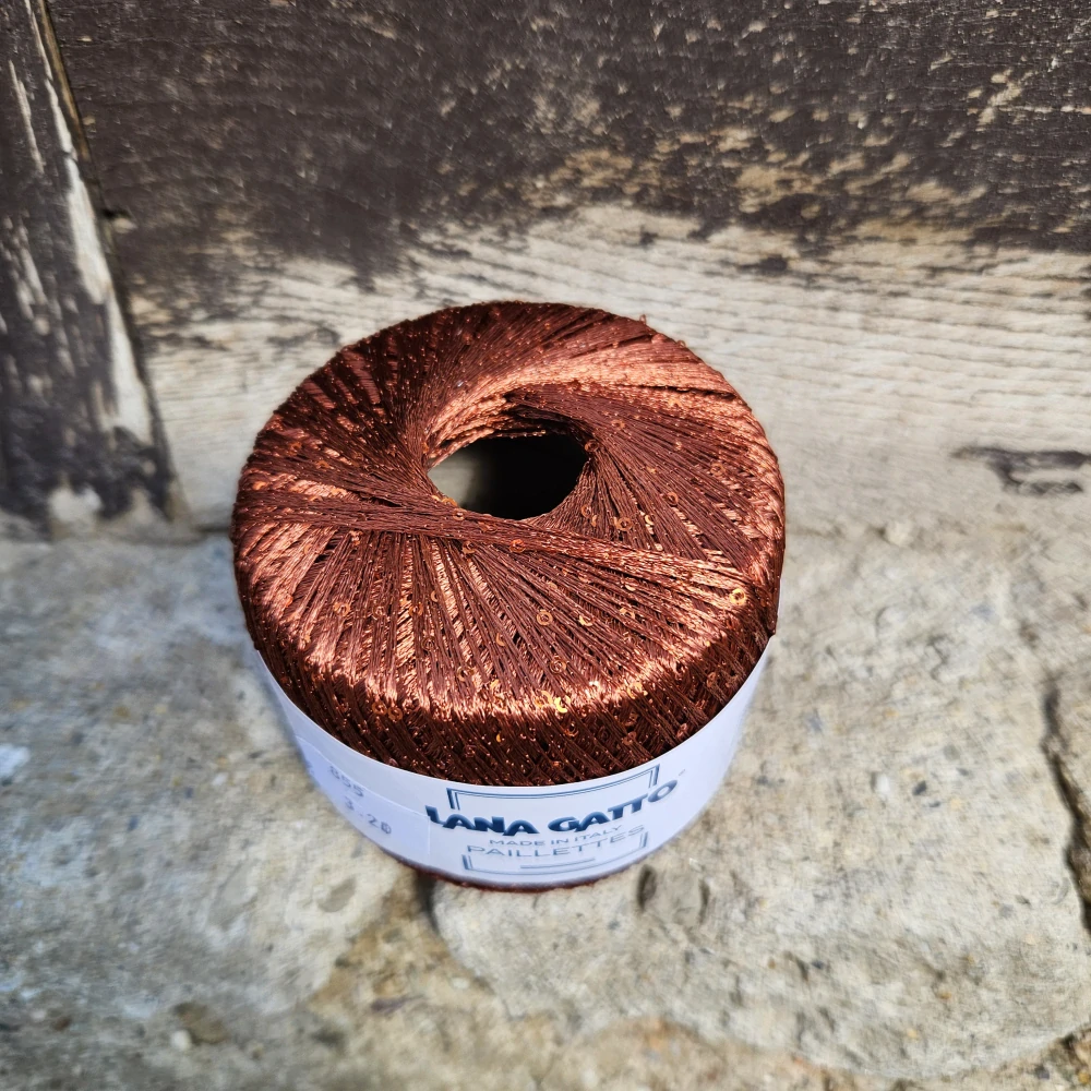 Paillettes 31160 - tmavo škoricová tenká pripletacia priadza s flitramiSkladom3,10 EUR/ ks2,52 EUR bez DPH