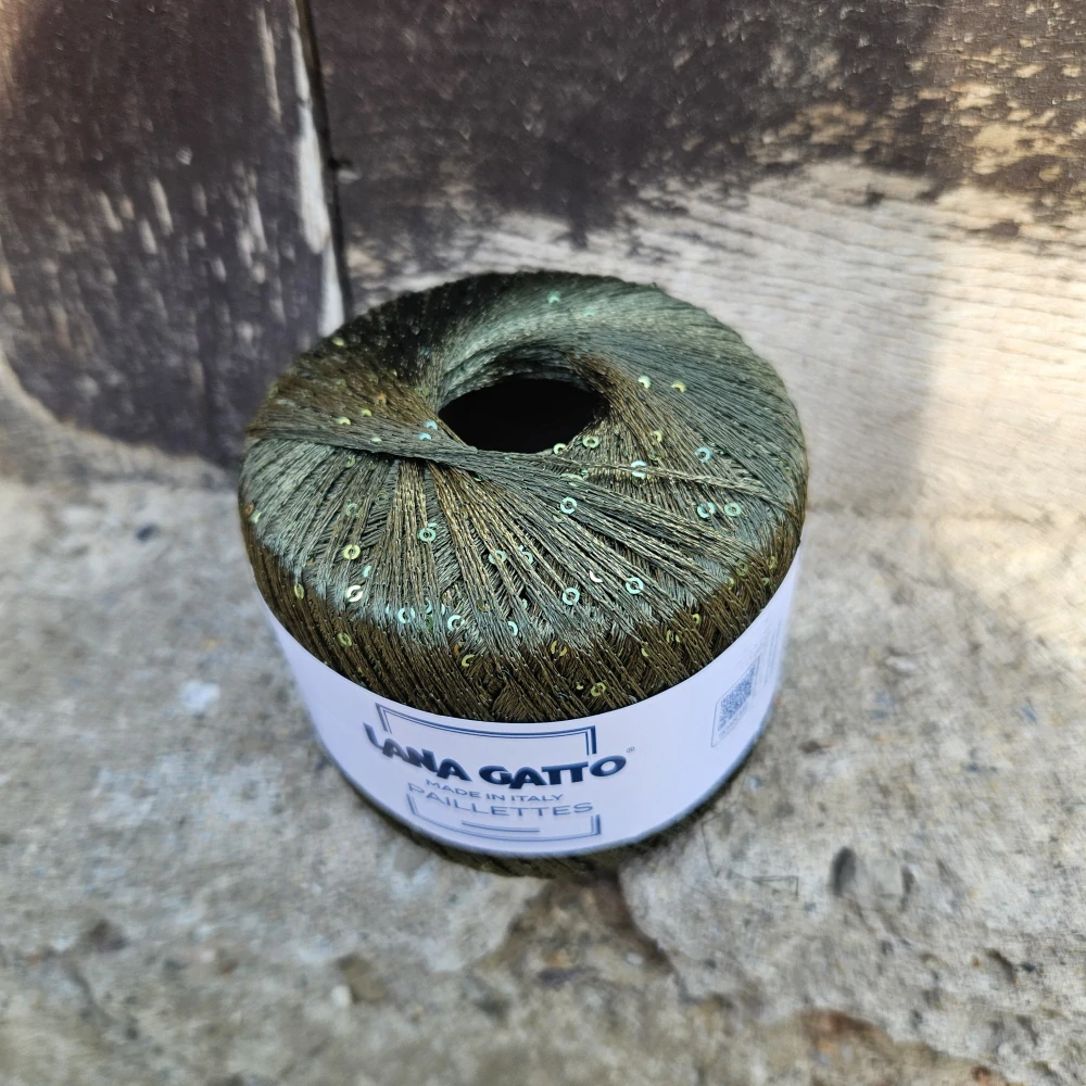 - Paillettes 31162 - tmavo olivová tenká pripletacia priadza s flitrami