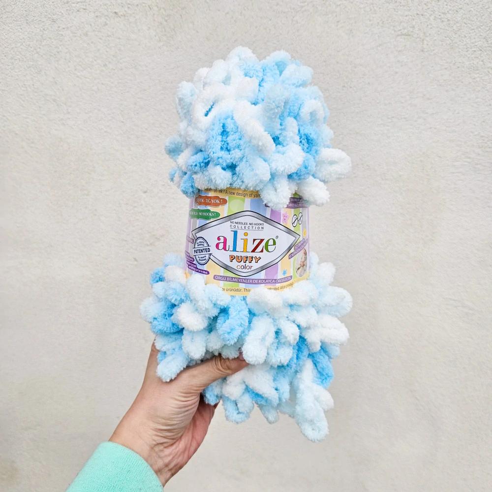 Puffy Color 5924 - Bielo tyrkysovo modrá vlna s očkamiSkladom2,55 EUR/ ks2,07 EUR bez DPH