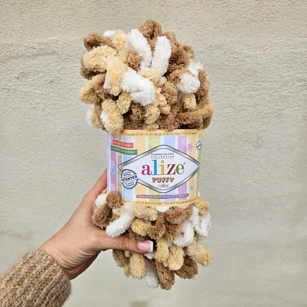 Puffy Color 6398 - karamel hnedo biela vlna s očkamiSkladom2,55 EUR/ ks2,07 EUR bez DPH