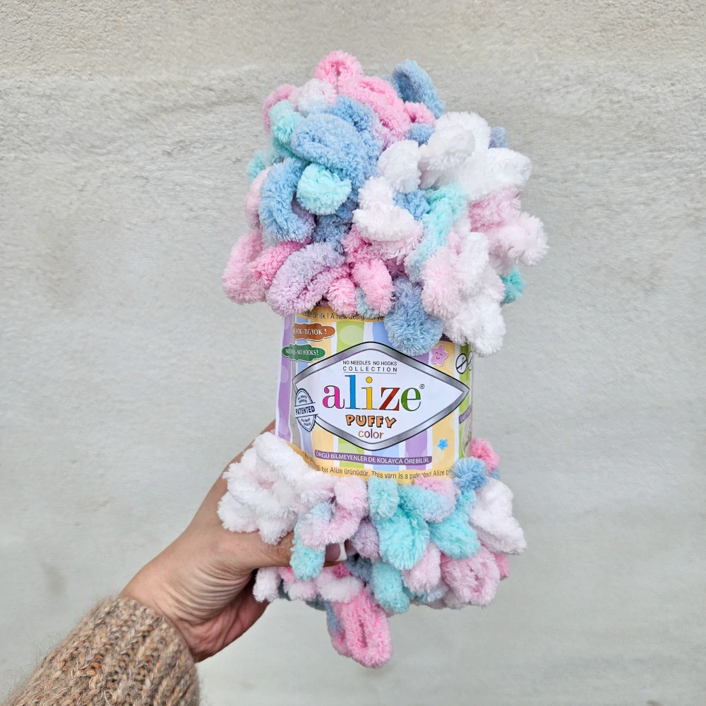 - Puffy Color 6529 - Ružovo bielo mentol sivá vlna s očkami