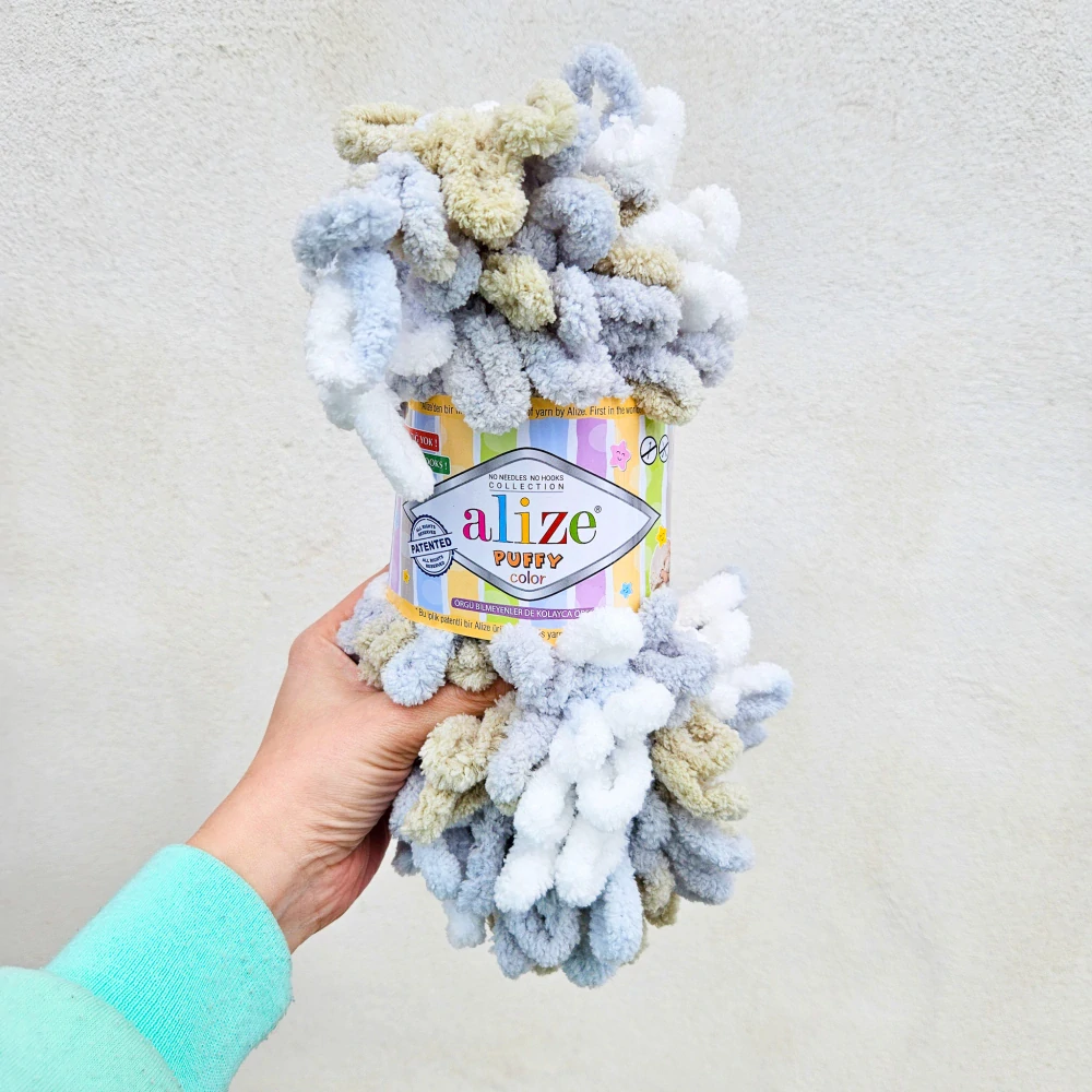 Puffy Color 8014 - sivo bielo bežová vlna s očkamiSkladom2,55 EUR/ ks2,07 EUR bez DPH