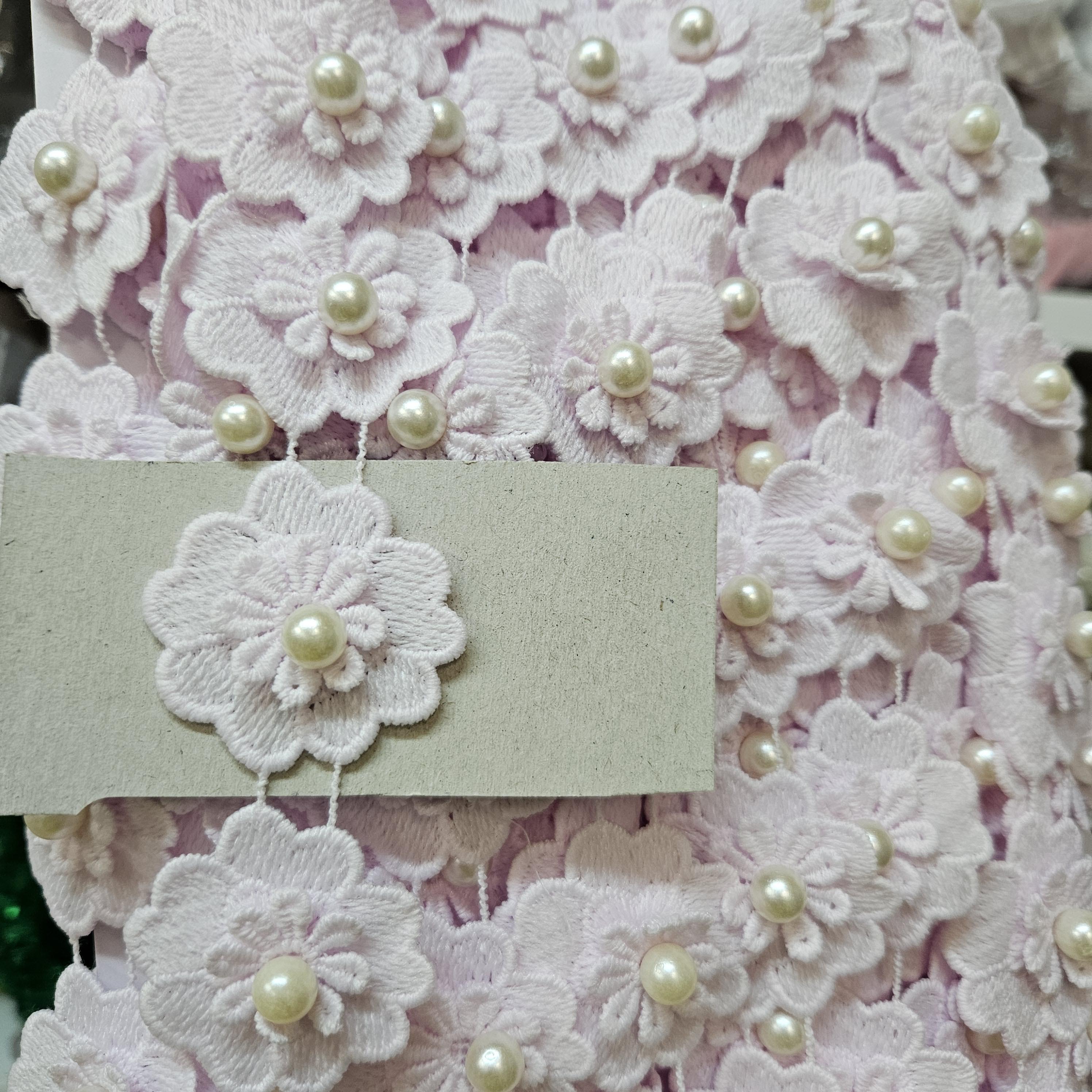 - Ružové kvietky s perlou krajka / lemovka šírka cca 4cm x 1m