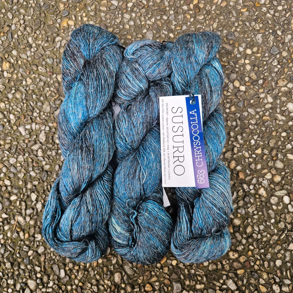 Susurro - 663 Chrysocolla - denim sivo modrastá priadza z morušového hodvábu, ľanu a merina